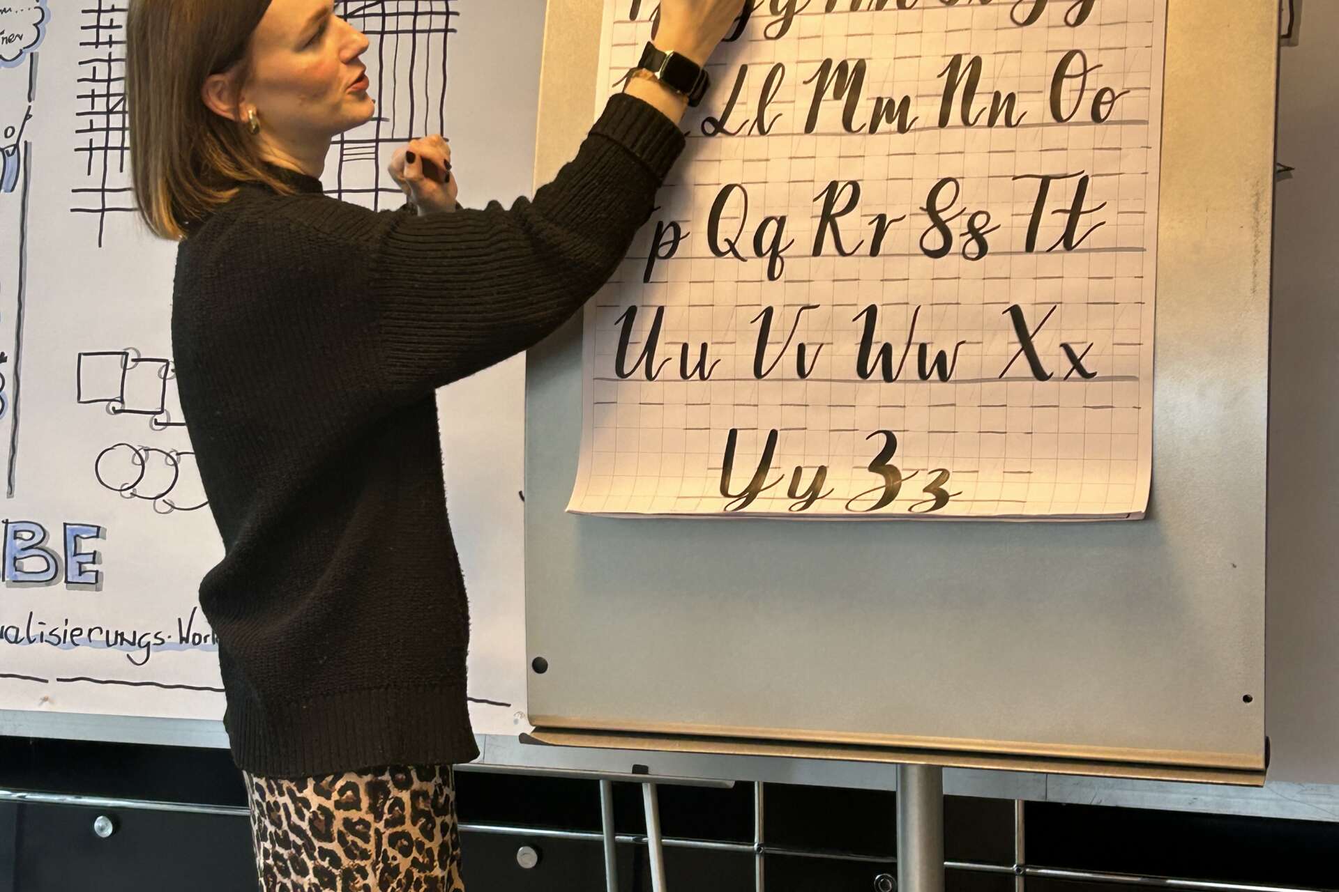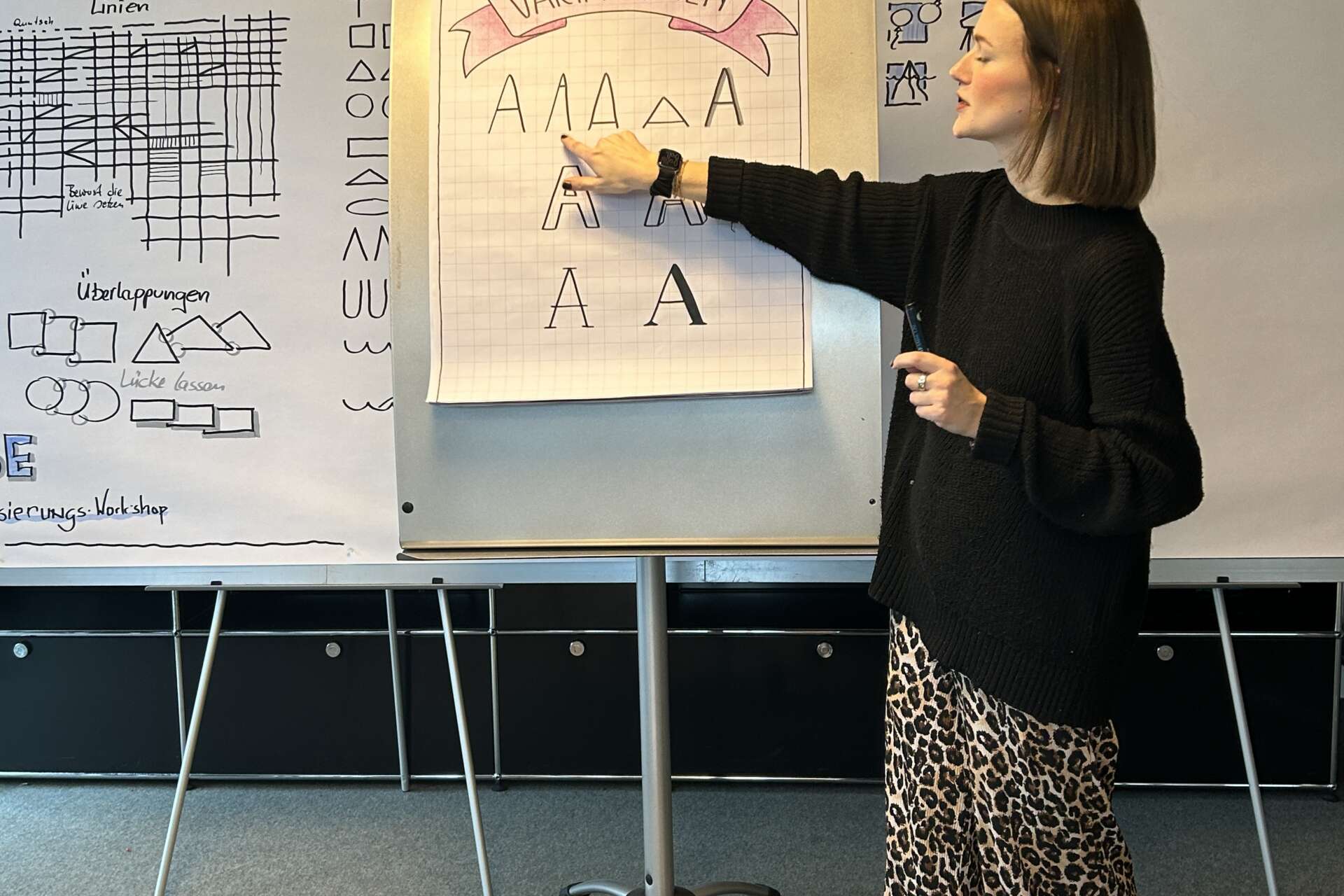 - eine klar lesbare Sans-Serif-Schrift für Flipcharts und Mitschriften
